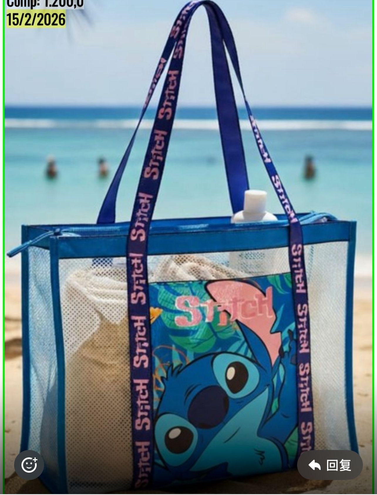 Bolso de playa Stich azul cantidad